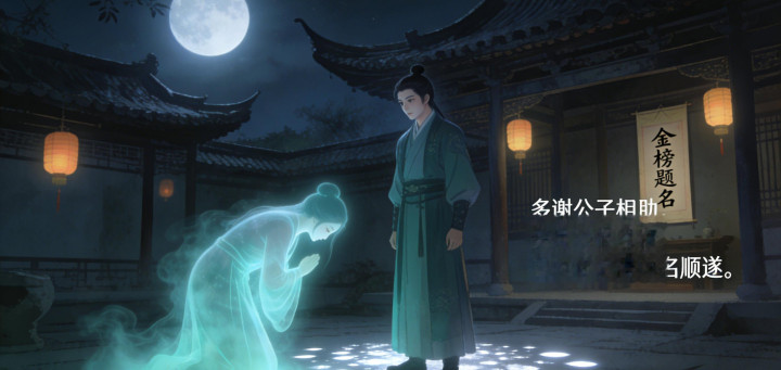 苏婉的鬼魂看着柳砚,深深一拜:“多谢公子相助,妾身为报恩情,已为你求得功名顺遂。”说罢,身形消散在夜色中。柳砚后来果然金榜题名,想起这段奇遇,仍心有余悸。